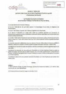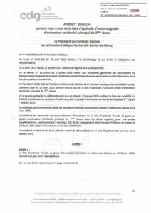 Arrêté n°2026-154 mise à jour liste aptitude d’animateur territorial P2