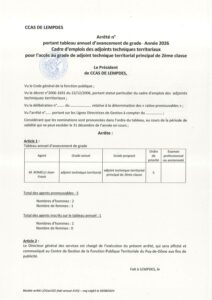 Tableaux d'avancement de grade