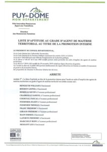 Promotion interne Agent de maîtrise Conseil departemental du Puy-de-Dome