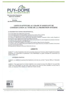 Promotion interne Assistant de conservation Conseil departemental du Puy-de-Dome