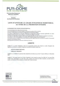 Promotion interne Ingénieur Conseil departemental du Puy-de-Dome