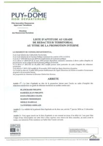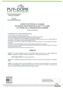 Promotion interne Redacteur principal 2e classe Conseil departemental du Puy-de-Dome