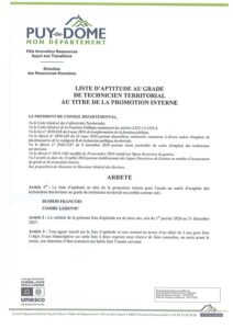 Promotion interne Technicien Conseil departemental du Puy-de-Dome