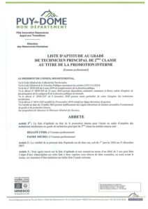 Promotion interne Technicien principal 2e classe Conseil departemental du Puy-de-Dome